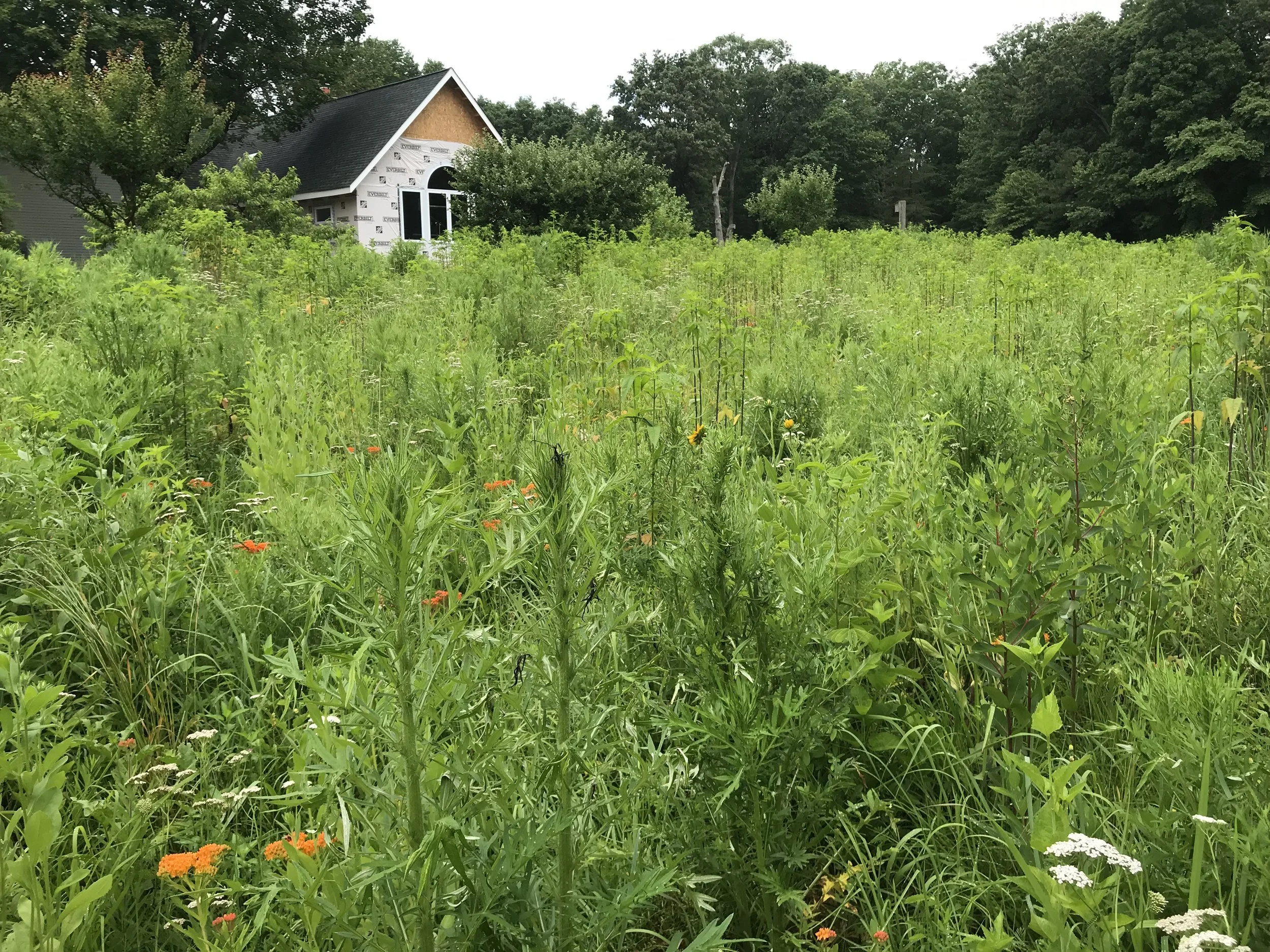 July 2016 - 2nd year's growth showing at least 12 species of native wildflowers and 5 species of native grass. A wide variety of bees, butterflies and moths are enjoying the bloom.